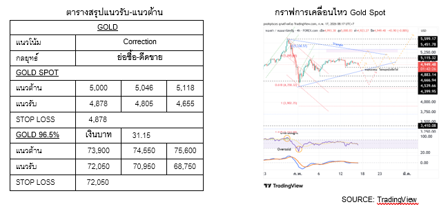 สำหรับกลยุทธ์การลงทุน เสี่ยงซื้อหากราคาไม่หลุด $4,932-4,878 (ตัดขาดทุนหากราคาหลุด $4,878) ขายทำกำไรหากราคาไม่ผ่านแนวต้าน $4,964-5,000 หากผ่าน $5,000 ได้ชะลอไปขายที่แนวต้านถัดไป