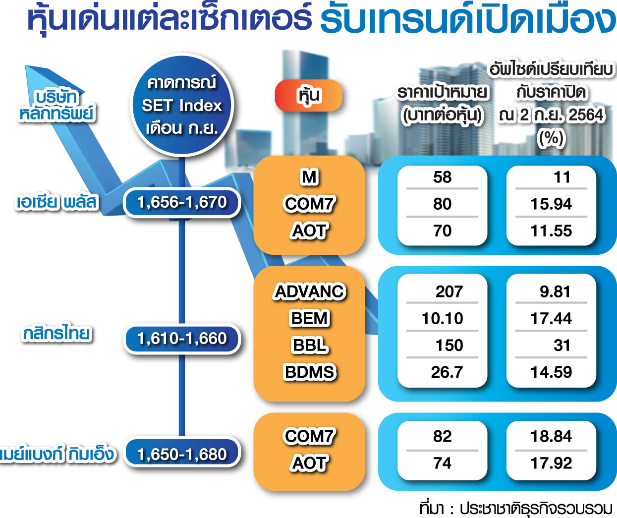 อ่านข่าวต้นฉบับ: ดัชนี SET เดือน ก.ย.บวกต่อ มุมมองโบรกฯ 3 ค่าย คัดหุ้นเด่นรับเปิดเมือง