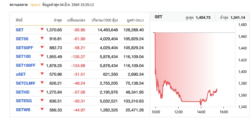 รายงานจากตลาดหลักทรัพย์แห่งประเทศไทย (SET) แจ้งว่าคณะกรรมการตลาดหลักทรัพย์แห่งประเทศไทย จึงพิจารณาอนุญาตให้สามารถซื้อขายด้วยชุดคำสั่งคอมพิวเตอร์สำหรับการซื้อขายโดยอัตโนมัติ (Program Trading) ได้ตั้งแต่เวลา 15.00 น. ในวันที่ 4 มีนาคม 2569 เป็นต้นไป