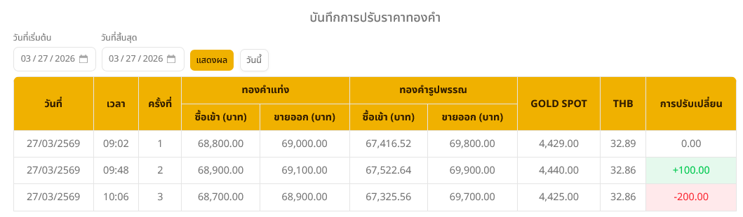 อ่านข่าวต้นฉบับ: ราคาทองวันนี้ (27 มี.ค. 69) ปรับลง 100 บาท ทองรูปพรรณบาทละ 69,700 บาท