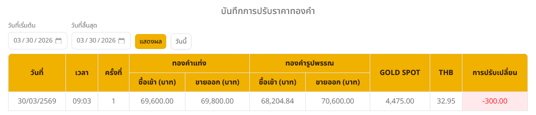 อ่านข่าวต้นฉบับ: ราคาทองวันนี้ (30 มี.ค. 69) ปรับลง 300 บาท ทองรูปพรรณบาทละ 70,600 บาท