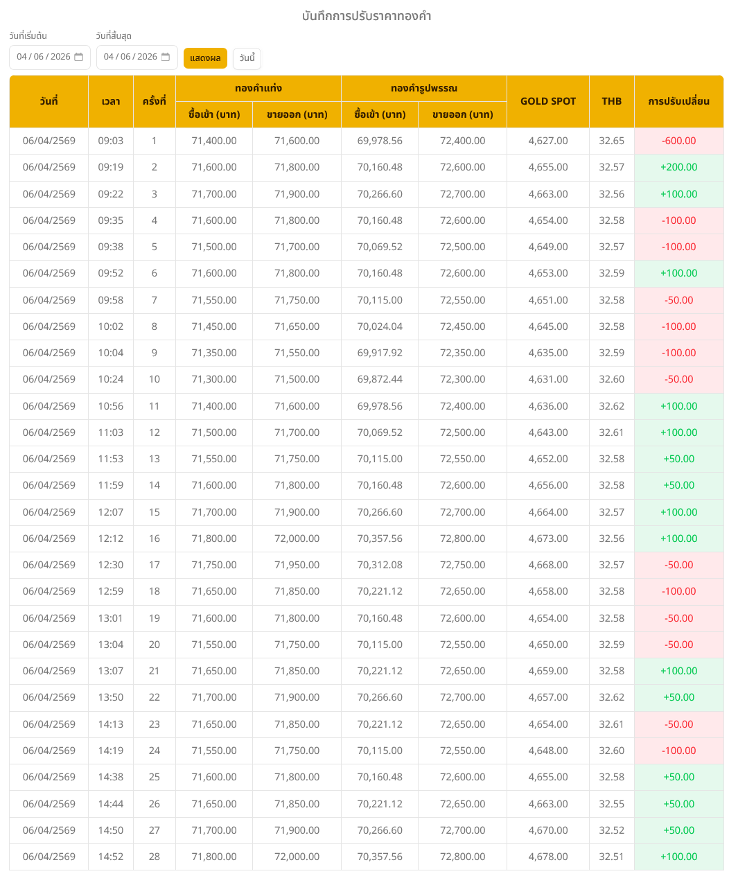 ด้านราคาทองรูปพรรณ รับซื้ออยู่ที่บาทละ 70,554.64 บาท และมีราคาขายออกที่ 73,000.00 บาท ทั้งนี้ ในส่วนของราคาทองคำโลก (Gold Spot) อยู่ที่ระดับ 4,700.00 ดอลลาร์ต่อออนซ์