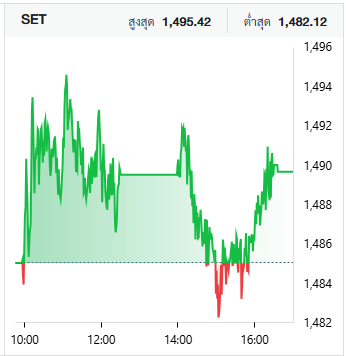 ผู้สื่อข่าวรายงานว่า ตลาดหุ้นไทยวันนี้ (9 เมษายน 2569) ดัชนี SET ปิดที่ระดับ 1,489.66 จุด เพิ่มขึ้น 4.63 จุด (+0.31%) มูลค่าการซื้อขายรวม 63,413.34 ล้านบาท แบ่งเป็นนักลงทุนสถาบันขายสุทธิ 1,558.71 ล้านบาท บัญชีบริษัทหลักทรัพย์ขายสุทธิ 676.86 ล้านบาท นักลงทุนต่างประเทศขายสุทธิ 19.27 ล้านบาท และนักลงทุนในประเทศซื้อสุทธิ 2,254.84 ล้านบาท