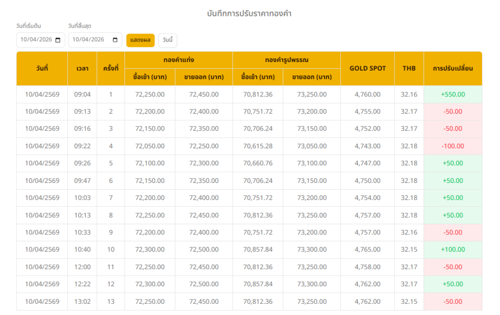 อ่านข่าวต้นฉบับ: ราคาทองวันนี้ (10 เม.ย. 69) ปรับขึ้น 550 บาท ทองรูปพรรณบาทละ 73,250 บาท