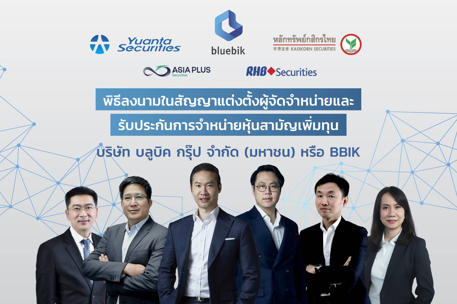 ทั้งนี้บริษัทฯ ได้แต่งตั้ง บริษัทหลักทรัพย์ หยวนต้า (ประเทศไทย) จำกัด และ บริษัทหลักทรัพย์ กสิกรไทย จำกัด (มหาชน) เป็นผู้จัดการการจัดจำหน่ายและรับประกันการจำหน่าย พร้อมทั้งแต่งตั้ง บริษัทหลักทรัพย์ เอเซีย พลัส จำกัด บริษัทหลักทรัพย์ อาร์เอชบี (ประเทศไทย) จำกัด (มหาชน) เป็นผู้จัดจำหน่ายและรับประกันการจำหน่ายหุ้นสามัญเพิ่มทุน