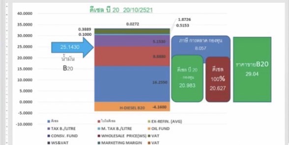 พร้อมทั้งตั้งข้อสังเกตว่ารัฐบาลไทยยุคนี้เสพติดการจัดเก็บภาษีสรรพสามิตเกือบ 6 บาท/ลิตร เป็นหนึ่งในโครงสร้างราคาน้ำมันตั้งแต่ปี 2557 มาจนถึงปัจจุบัน ทำให้กลไกลราคาไม่สะท้อนความจริง มีการดึงเอาเงินกองทุนน้ำมันเชื้อเพลิงไปอุดหนุนราคา LPG สนับสนุนเชื้อเพลิงชีวภาพ และอื่นๆ อีกมากมาย ทำให้โครงสร้างราคาอิรุงตุงนังไปหมด ซึ่งไม่ว่ารัฐจะเสพติดอะไรก็แล้วแต่ รัฐควรคำนึงถึงผลกระทบที่จะเกิดกับประชาชนและต้องเร่งหาวิธีการบรรเทาความเดือดร้อนให้กับประชาชนให้ได้