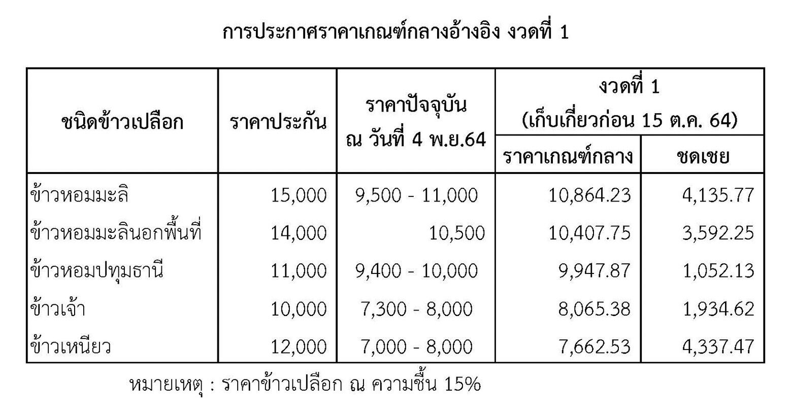 วันที่ 9 พฤศจิกายน 2564 ผู้สื่อข่าวรายงานว่า ธนาคารเพื่อการเกษตรและสหกรณ์การเกษตร (ธ.ก.ส.) ทยอยโอนเงินโครงการประกันรายได้เกษตรกรผู้ปลูกข้าว ปี 2564/65 วงเงินรวม 13,225 ล้านบาท ให้แก่เกษตรกรผู้ปลูกข้าว 5 ชนิด ดังนี้