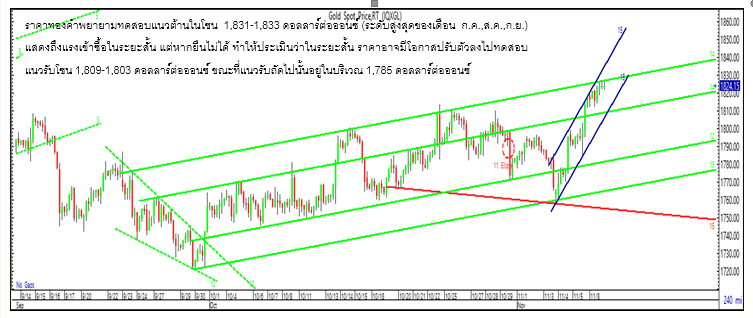 คำแนะนำ หากราคาทองคำสามารถยืนเหนือบริเวณ 1,809-1,803 ดอลลาร์ต่อออนซ์ได้อย่างแข็งแกร่ง สามารถรอขายทำกำไรบางส่วนบริเวณแนวต้าน 1,831-1,833 ดอลลาร์ต่อออนซ์ แต่ถ้าฝ่าไปได้ไม่ได้อาจมีแรงขายที่เพิ่มขึ้น