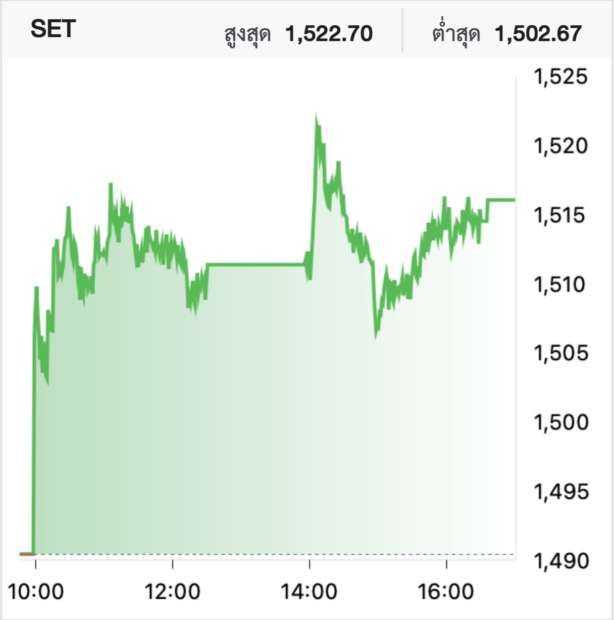 ผู้สื่อข่าวรายงานว่า ตลาดหุ้นไทยวันนี้ (25 กุมภาพันธ์ 2569) ดัชนี SET ปิดที่ระดับ 1,516.01 จุด เพิ่มขึ้น 25.61 จุด (+1.72%) โดยทำจุดสูงสุดที่ 1,522.70 จุด และจุดต่ำสุดที่ 1,502.67 จุด มูลค่าการซื้อขายรวม 95,599.29 ล้านบาท แบ่งเป็นนักลงทุนสถาบันซื้อสุทธิ 319.01 ล้านบาท บัญชีบริษัทหลักทรัพย์ซื้อสุทธิ 983.61 ล้านบาท นักลงทุนต่างประเทศขายสุทธิ 2,324.09 ล้านบาท และนักลงทุนในประเทศซื้อสุทธิ 1,021.46 ล้านบาท
