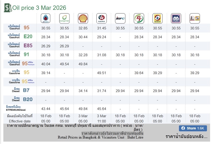 ปั๊ม ปตท. (3 มีนาคม 2569)