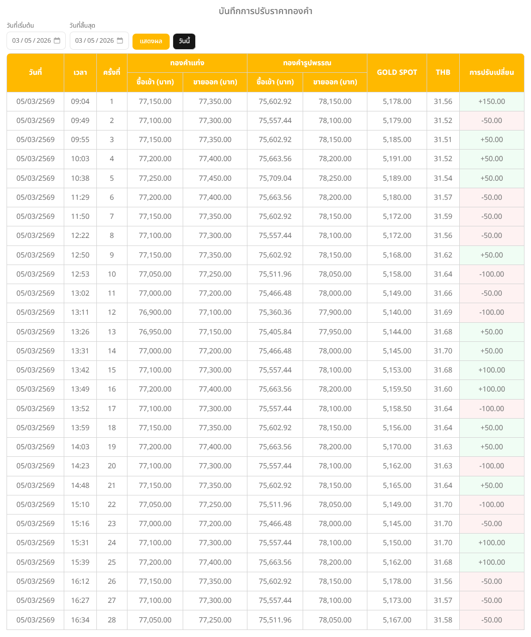 • ขายออก บาทละ 78,150 บาท