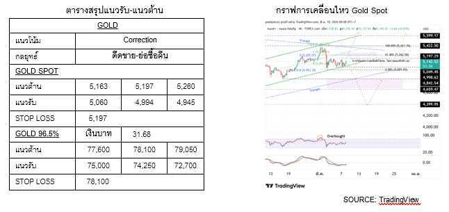 สำหรับกลยุทธ์การลงทุน เปิดสถานะขายอีกครั้ง หากราคาไม่ผ่าน $5,197 (ตัดขาดทุนหากราคาผ่าน $5,197) ซื้อคืนสถานะขาย หากราคาไม่หลุด $5,119-5,060 หากหลุด $5,060 ชะลอการซื้อคืนไปที่รับถัดไป