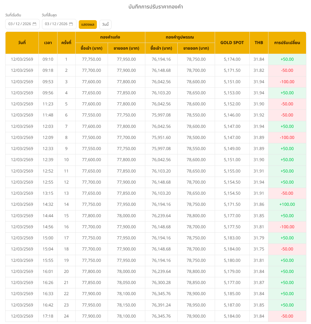• ขายออก บาทละ 77,750 บาท
