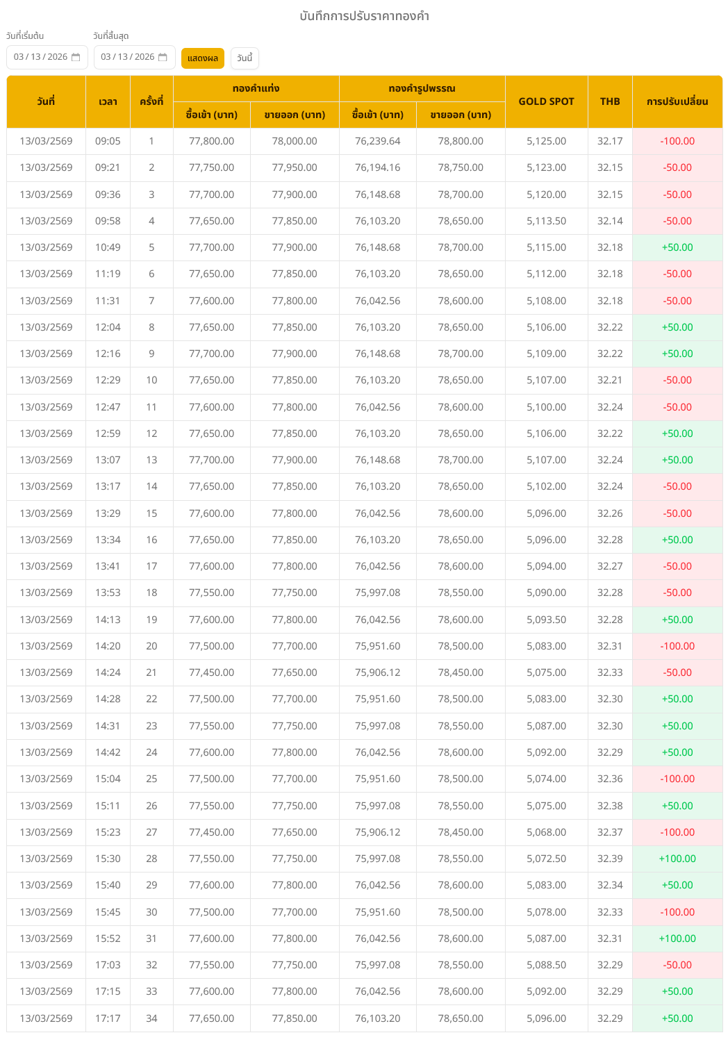 อ่านข่าวต้นฉบับ: ราคาทองวันนี้ (13 มี.ค. 69) ปรับลง 250 บาท ทองรูปพรรณบาทละ 78,650 บาท