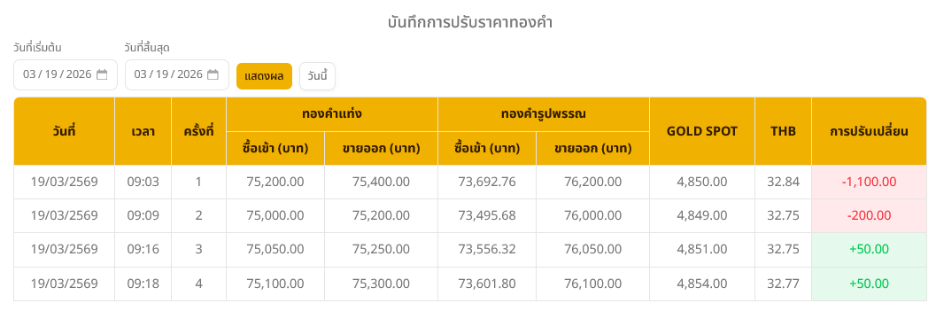 อ่านข่าวต้นฉบับ: ราคาทองวันนี้ (19 มี.ค. 69) ปรับลง 1,200 บาท ทองรูปพรรณบาทละ 76,100 บาท