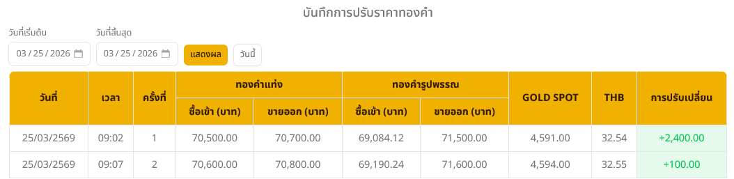อ่านข่าวต้นฉบับ: ราคาทองวันนี้ (25 มี.ค. 69) ปรับขึ้น 2,500 บาท ทองรูปพรรณบาทละ 71,600 บาท