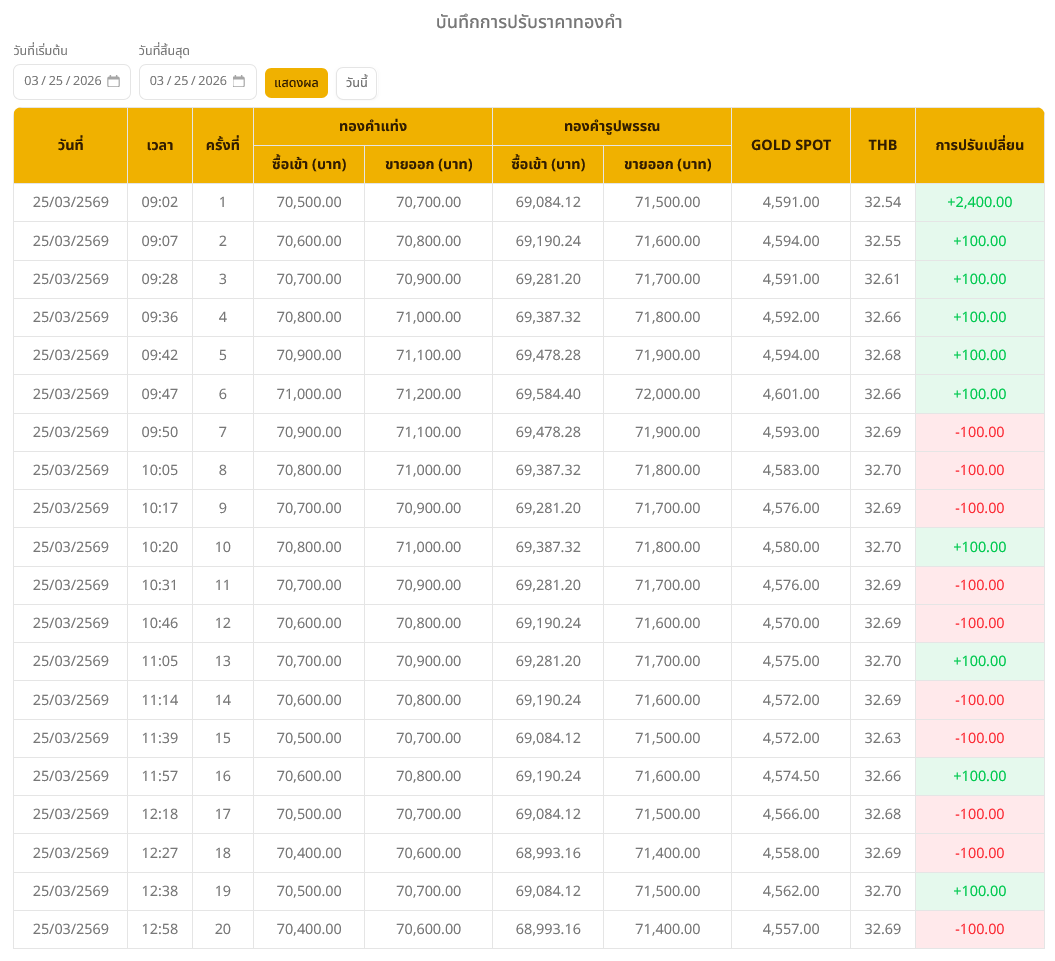 อ่านข่าวต้นฉบับ: ราคาทองวันนี้ (25 มี.ค. 69) ปรับขึ้น 2,300 บาท ทองรูปพรรณบาทละ 71,400 บาท