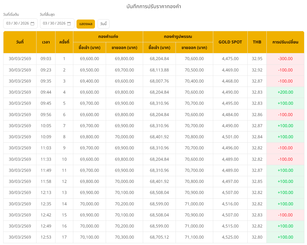 อ่านข่าวต้นฉบับ: ราคาทองวันนี้ (30 มี.ค. 69) ปรับขึ้น 200 บาท ทองรูปพรรณบาทละ 71,100 บาท