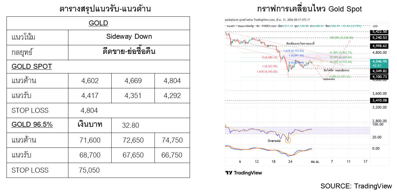 อ่านข่าวต้นฉบับ: แนวโน้มราคาทองวันนี้ (31 มี.ค. 69) บทวิเคราะห์โดย YLG Bullion