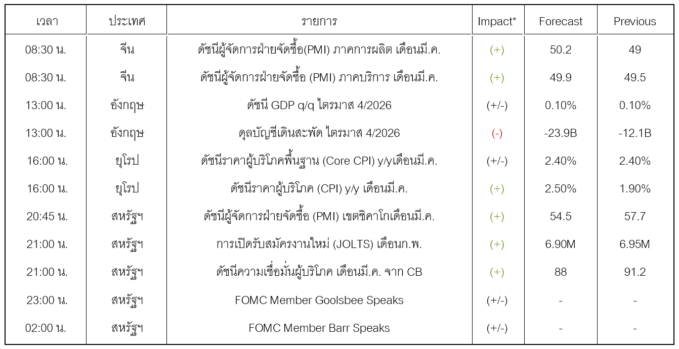 ล่าสุด นายJerome Powell ประธานเฟด กล่าวว่า เฟดสามารถ “รอดูสถานการณ์” ได้ก่อน เพื่อประเมินว่าความขัดแย้งกับอิหร่านจะส่งผลต่อเศรษฐกิจและเงินเฟ้ออย่างไร บ่งชี้ว่าเฟดมีแนวโน้มจะคงอัตราดอกเบี้ยต่อไปซึ่งเป็นปัจจัยกดดันการปรับตัวขึ้นของทองคำ