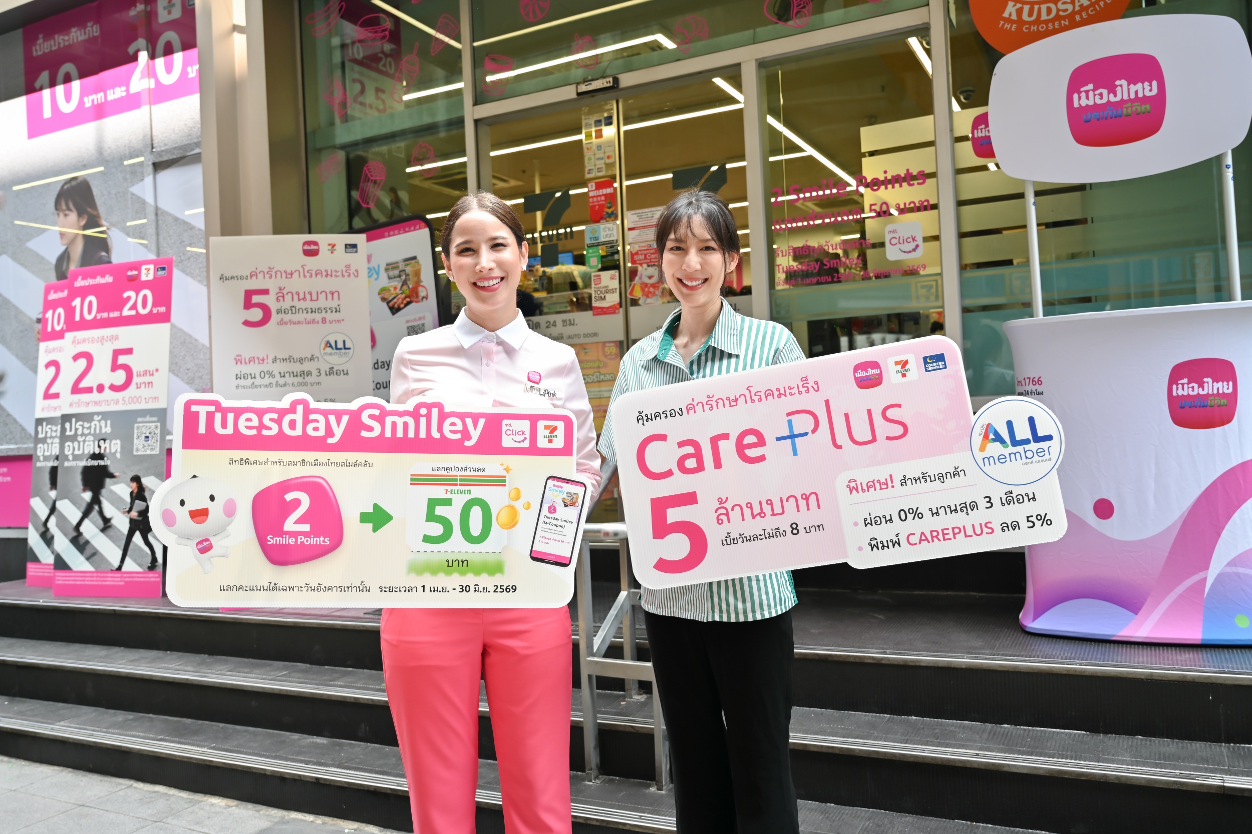 ด้านสมาชิกเมืองไทยสไมล์คลับ รับสิทธิพิเศษ Tuesday Smiley (M-Coupon) แลกคะแนนเฉพาะวันอังคารเท่านั้น ใช้เพียง 2 Smile Points แลกรับคูปองแทนเงินสดมูลค่า 50 บาท (2 สิทธิ์/1 ท่าน/ สัปดาห์) จำนวน 3,000 สิทธิ์ เพื่อชำระค่าสินค้าที่ 7-Eleven เพื่อนที่รู้ใจ ใกล้ ๆ คุณ แลกรับสิทธิ์ได้ทาง MTL Click Application และแสดง Barcode ณ จุดชำระเงินร้าน 7-Eleven ระยะเวลากิจกรรมวันที่ 1 เมษายน 2569-30 มิถุนายน 2569