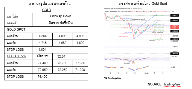 สำหรับวันนี้ แนะนำดูแนวรับบริเวณ $4,669 หากยืนได้ยังมีโอกาสดีดทดสอบแนวต้าน แต่หากหลุด $4,669 ประเมินว่าราคาจะเข้าสู่ชุดพักตัว-ลงอีกครั้ง ซื้อคืนสถานะขาย หากไม่หลุด $4,715-4,669 หากหลุด $4,669 ชะลอการซื้อคืนไปหากไม่หลุด $4,600-4,529 เปิดสถานะขาย หากราคาดีดไม่ผ่าน $4,785-4,804 (ตัดขาดทุนหากราคาดีดผ่าน $4,804)