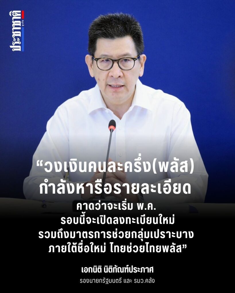 อ่านข่าวต้นฉบับ: คนละครึ่งพลัส 2569 แจก 50 ล้านคน ผ่านเป๋าตัง เปิดลงทะเบียนเมษายนนี้