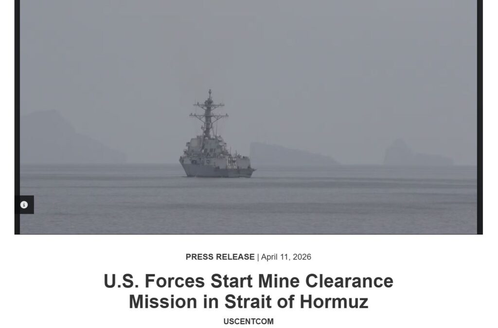 กองกำลังกองบัญชาการกลางสหรัฐ (CENTCOM) เผยแพร่ข่าวประชาสัมพันธ์เมื่อ 11 เม.ย. เวลาท้องถิ่นว่า เริ่มเตรียมการสำหรับการกวาดล้างทุ่นระเบิดในช่องแคบฮอร์มุซ เมื่อวันที่ 11 เมษายน โดยเรือพิฆาตติดขีปนาวุธนำวิถีของกองทัพเรือสหรัฐสองลำได้ปฏิบัติการ