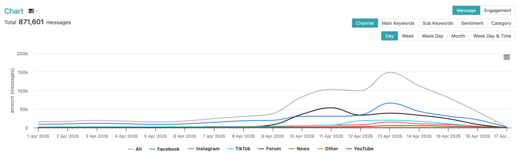 ผู้สื่อข่าวรายงานว่า บริษัท ไวซ์ไซท์ (ประเทศไทย) จำกัด ได้ทำการเก็บข้อมูลที่เกี่ยวกับ “เทศกาลสงกรานต์” ผ่านเครื่องมือ Zocial Eye ระหว่างวันที่ 1–17 เมษายน 2569 พบว่ามียอดการมีส่วนร่วมสูงถึง 424,598,759 เอนเกจเมนต์ จาก 871,601 ข้อความ