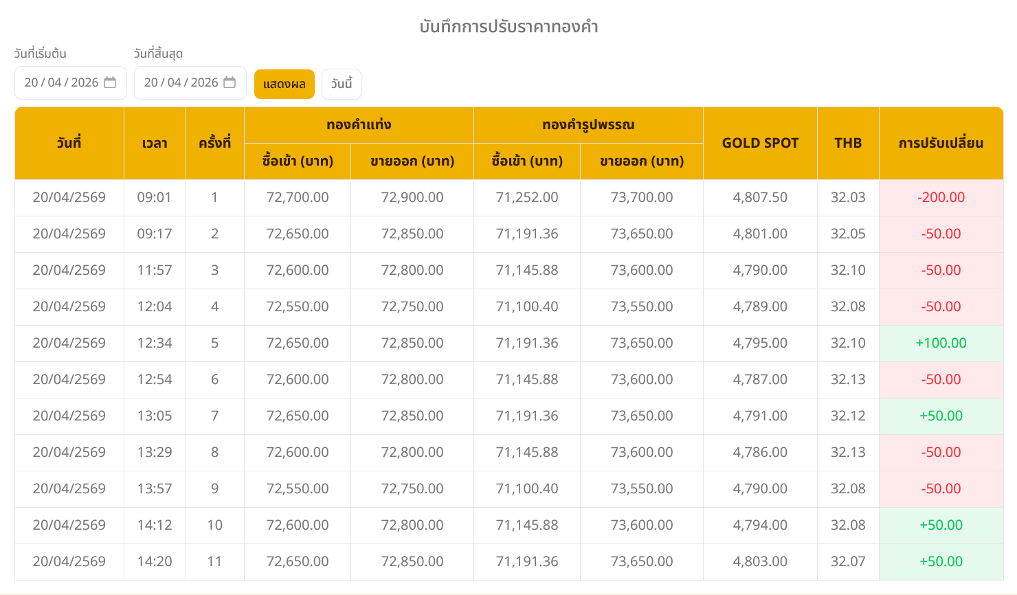 อ่านข่าวต้นฉบับ: ราคาทองวันนี้ (20 เม.ย. 69) ปรับลง 250 บาท รูปพรรณขายออก 73,650 บาท